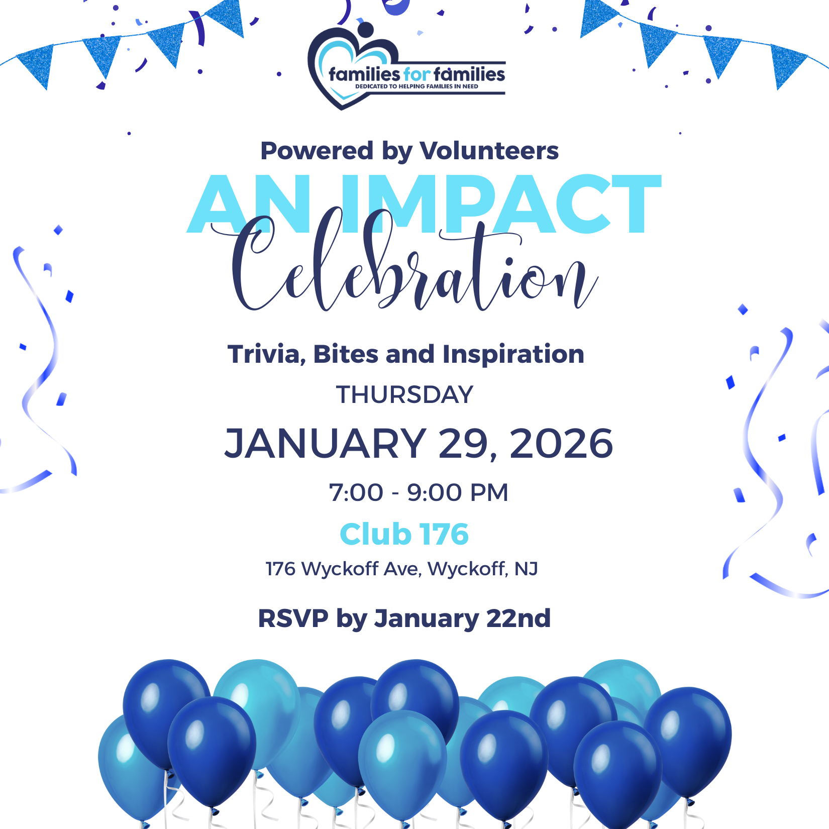 Thank you to all of our Families for Families volunteers. Join us as we celebrate you on January 29!.