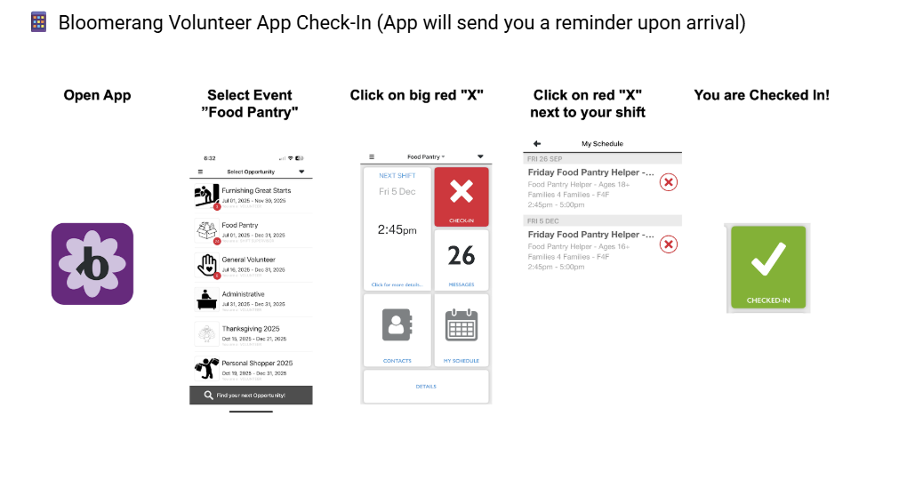 Bloomerang Volunteer App Check-In (App will send you a reminder upon arrival)